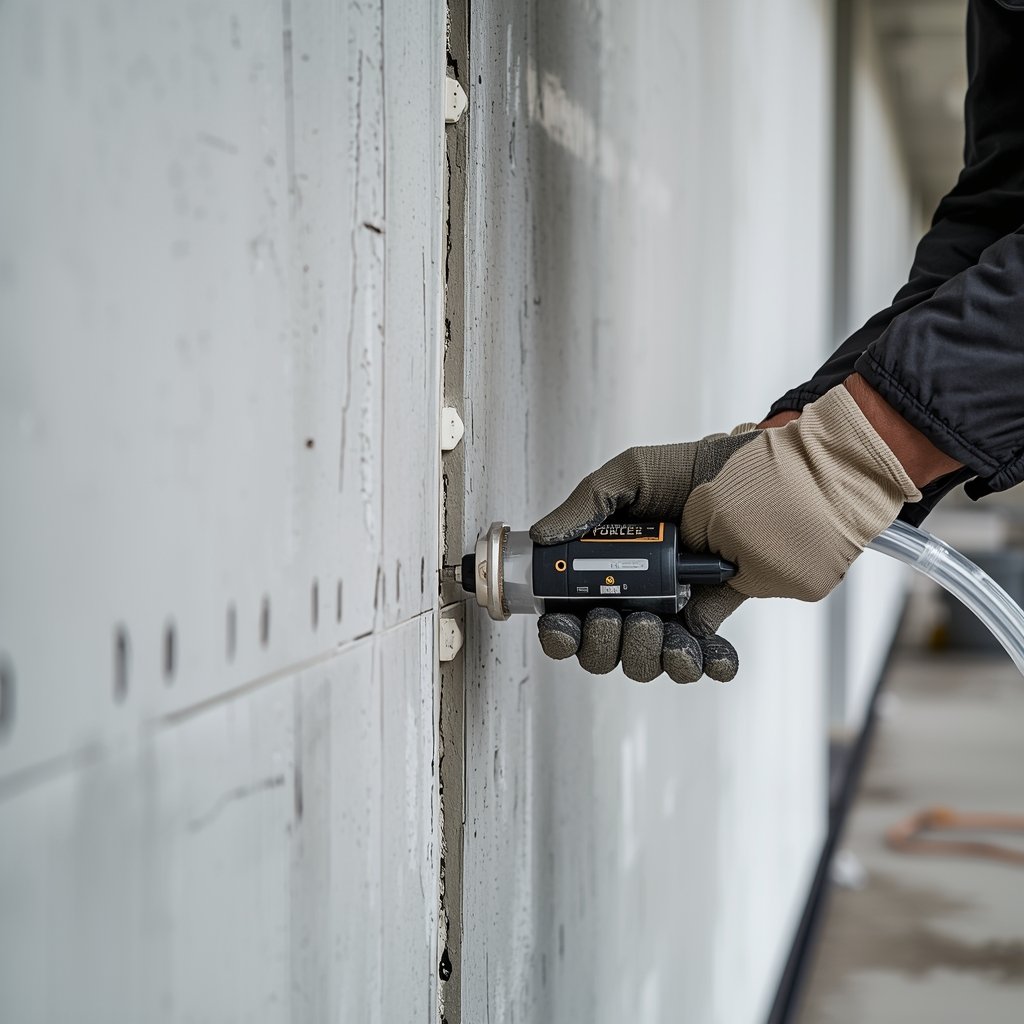Structural crack injection methods restore strength to damaged concrete surfaces.